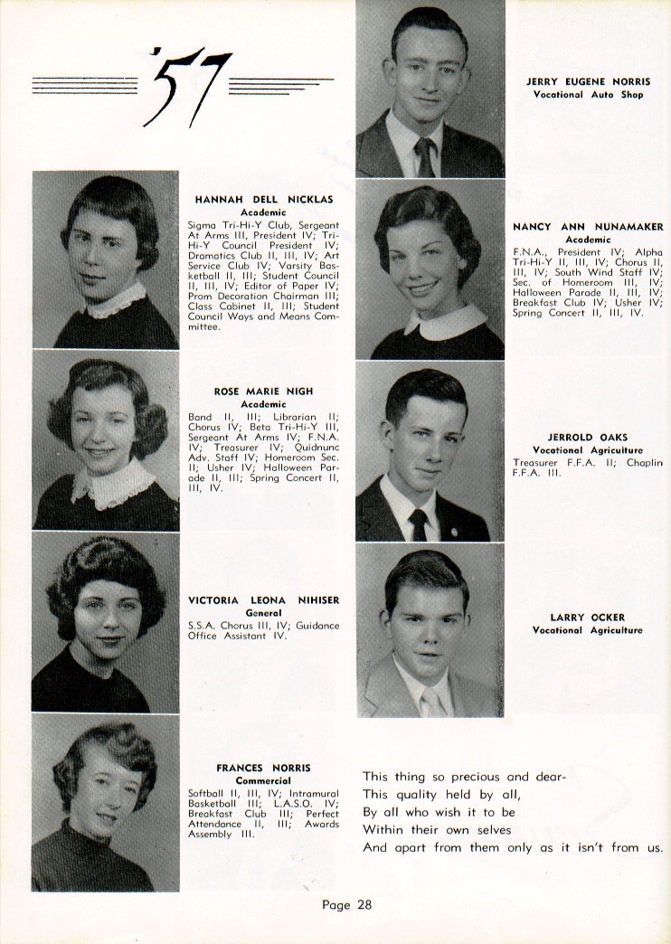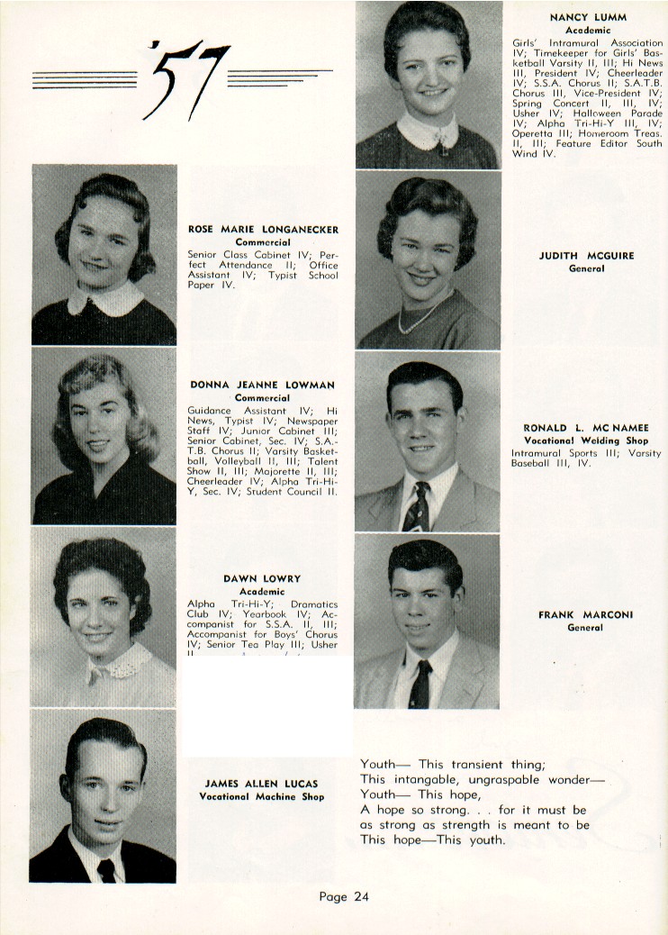 Class of 1957 - SHHS Yearbook Directory